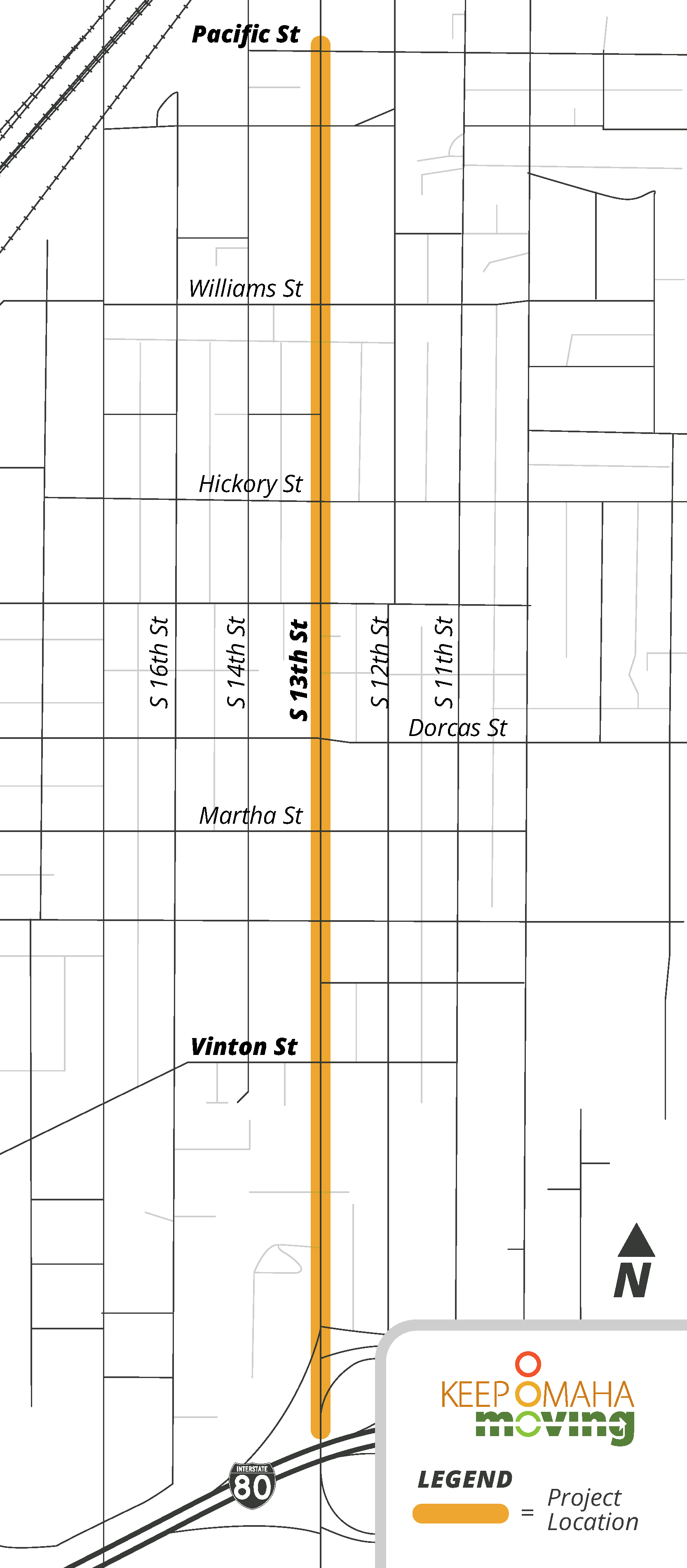 The project will result in a study to determine the ideal reconfiguration of the 13th Street Corridor that will provide equitable and attractive conditions for all street users without unduly hampering the flow of downtown traffic. Key considerations are expected to include impacts to: