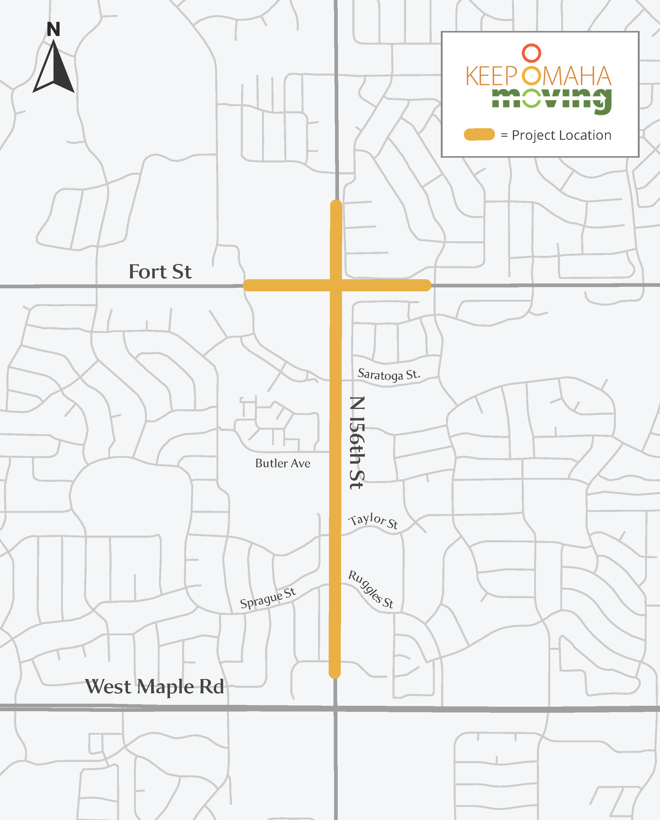 156th Street from North of Maple Street through the Fort Street intersection is planned to be reconstructed to a four-lane roadway, divided by a median.